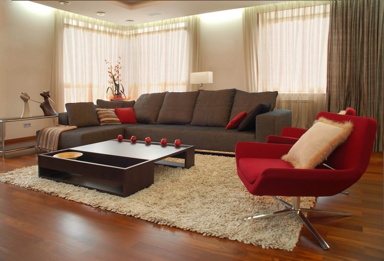 Si tous les locaux que vous avez créés dans une couleur, vous pouvez créer un accent de couleur vive en y installant une chaise d’une couleur inhabituelle. Cela attirera sûrement l'attention des visiteurs et ravira les yeux. Des poufs moelleux ou des sacs de fèves de couleurs vives, par exemple, auront fière allure dans un intérieur moderne.