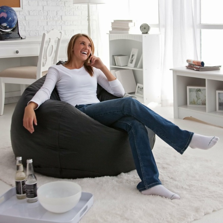 Si la pièce est utilisée simultanément comme salon et chambre à coucher, il se peut qu’elle ne dispose pas de suffisamment d’espace pour installer les canapés. Dans ce cas, la chaise sera une excellente alternative au pouf. Installez un ou plusieurs produits souples et la zone de repos sera déjà équipée.