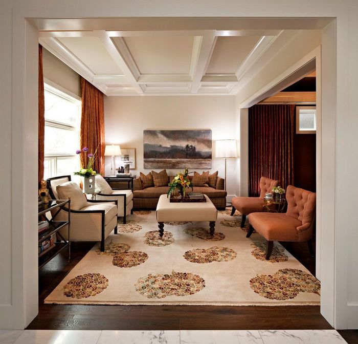 Un autre moyen simple de diversifier l'intérieur de votre pièce consiste à le diviser en zones à l'aide de chaises. Achetez une petite table basse et mettez-y quelques chaises. Cette partie de la pièce peut accueillir une compagnie chaleureuse d'amis. Vous pouvez également essayer de créer une zone de lecture, accrochée au mur de l’étagère avec vos livres préférés et posant une chaise à côté. Dans un tel endroit, vous aurez le plaisir de vous retirer le soir en sirotant un thé délicieux.
