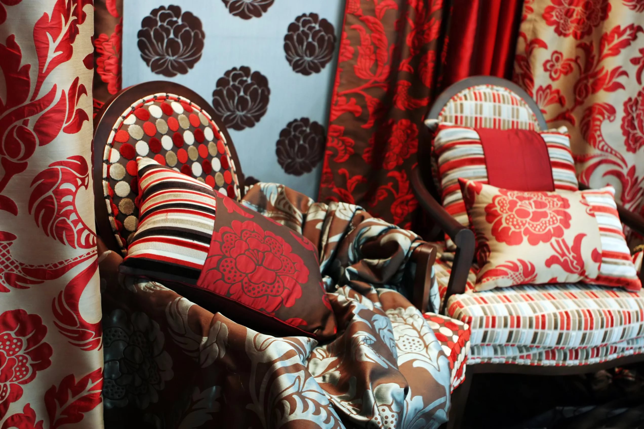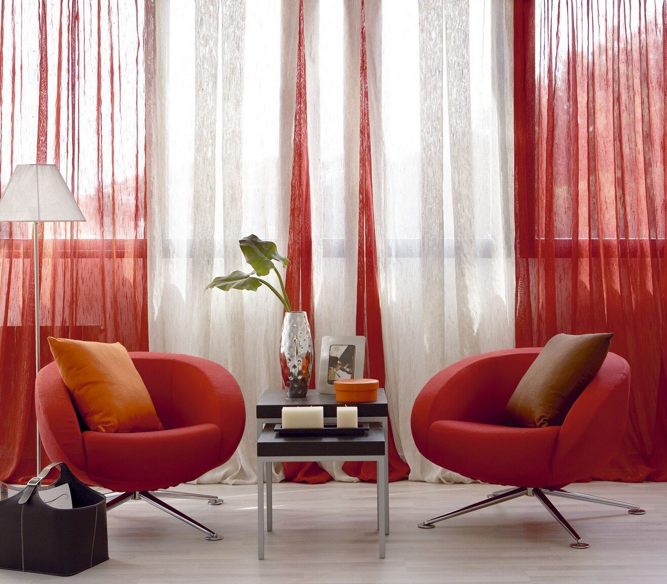 Sur un fond de fauteuil rouge, des couvertures et des coussins blancs, noirs, gris et autres couleurs classiques vous seront utiles. Surtout si la pièce a déjà ces nuances.