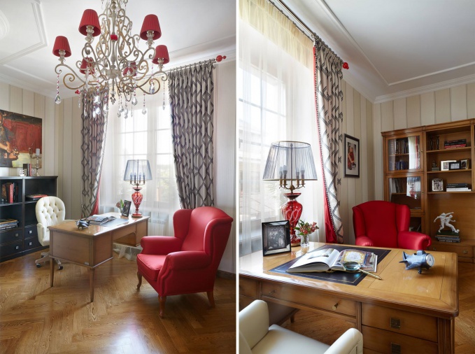 De plus, le rouge est traditionnellement associé à la richesse et au succès. Par conséquent, si vous croyez en le feng shui et en la symbolique de tous les détails, vous pouvez définir du rouge au lieu d'un mobilier sombre standard pour apporter de l'argent et du succès dans une maison ou un atelier.