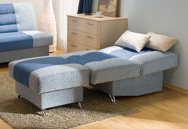- la capacité de transformer rapidement et facilement une chaise longue en litqui peut être utilisé non seulement pour accueillir des invités pour la nuit, mais également pour servir de lieu de sommeil à part entière tous les jours;