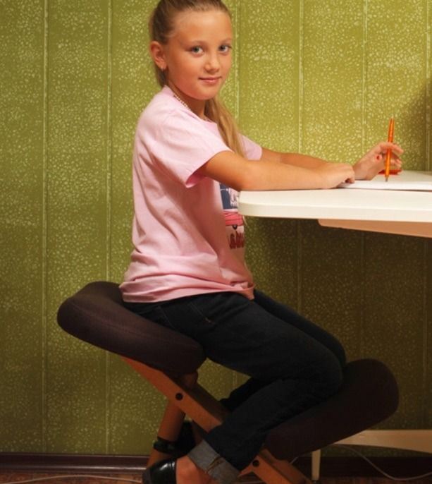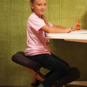 Une chaise d'école avec support de jambe élimine complètement la possibilité de problèmes de dos. Toute la charge se déplace sur le bas des jambes, laissant la colonne vertébrale dans une position confortable. Le centre de gravité se déplace, le dos dans cette position est aussi détendu que possible.