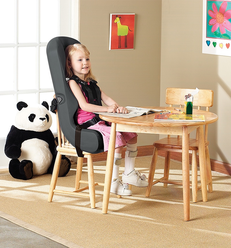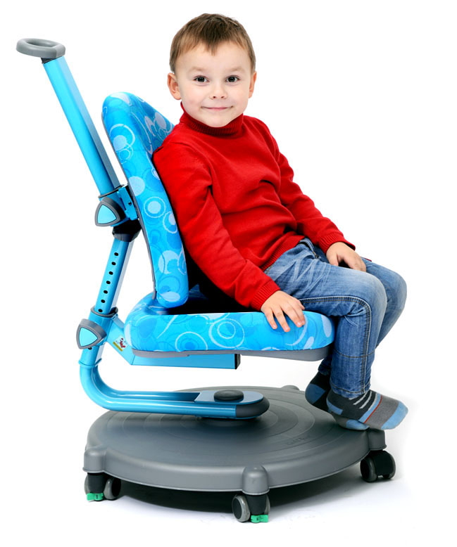 Pour les adolescents, essentiellement, le modèle de chaise dite debout-assis est acquis. Il est suffisamment haut pour que les jambes restent presque droites, tandis que le bassin est solidement fixé au siège.L'asymétrie est exclue dans une telle chaise, l'approvisionnement en sang n'est pas non plus perturbé.