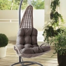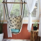 Une autre option gagnant-gagnant qui aura la même apparence dans votre salon, dans la cuisine et au comptoir du bar est une chaise suspendue. Il est fixé au plafond par le crochet afin que vous puissiez vous asseoir tranquillement sur de tels meubles et ne pas avoir peur de tomber.