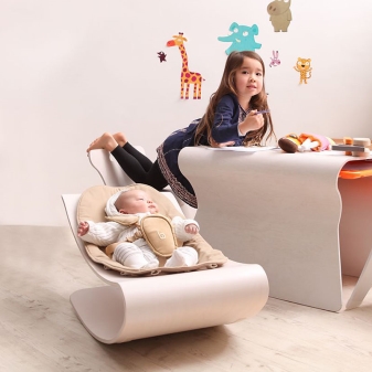 Dans la pépinière, les meubles doivent également être installés et faciles à nettoyer. Cela la protégera de toutes les ficelles du bébé. Votre nouveau fauteuil n'aura pas peur des taches de peinture ou de nourriture renversées. Dans le même temps, les chaises pour enfants doivent être lumineuses et intéressantes pour attirer l'attention de l'enfant.