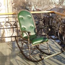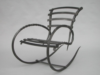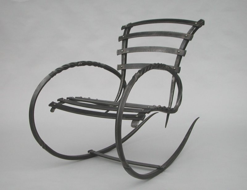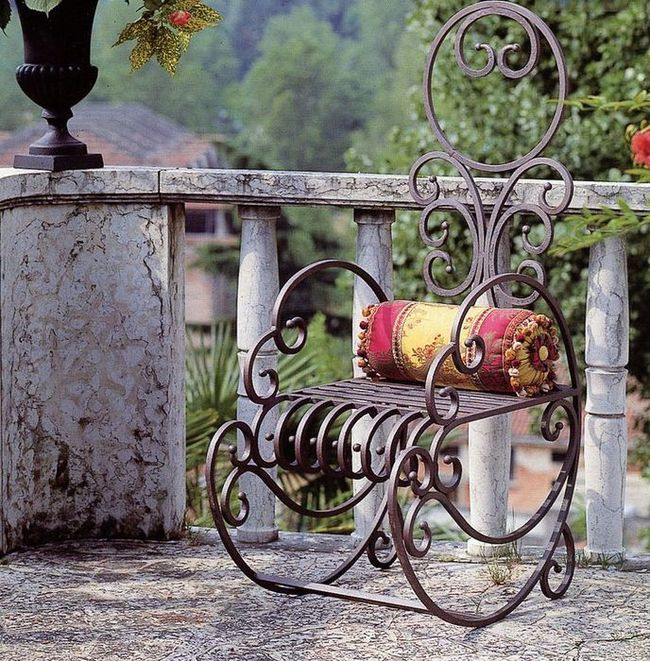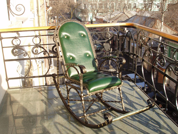 - De très belles fauteuils à bascule sont fabriqués en métal. Bien entendu, le siège est composé de lattes de bois ou d’un oreiller moelleux. Mais les coureurs et le cadre qu'ils ont en métal. Pièces forgées visibles: toutes sortes de boucles, de feuilles et de fleurs sont agréables à l'œil. La forge est élégante et décore le plus souvent le jardin ou la terrasse.