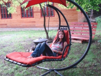 - Fauteuil à bascule pliable commodément dans le pays. Pour la saison estivale, il peut être placé dans le jardin et en hiver, il peut être placé dans le garde-manger, où il ne prendra pas beaucoup de place.