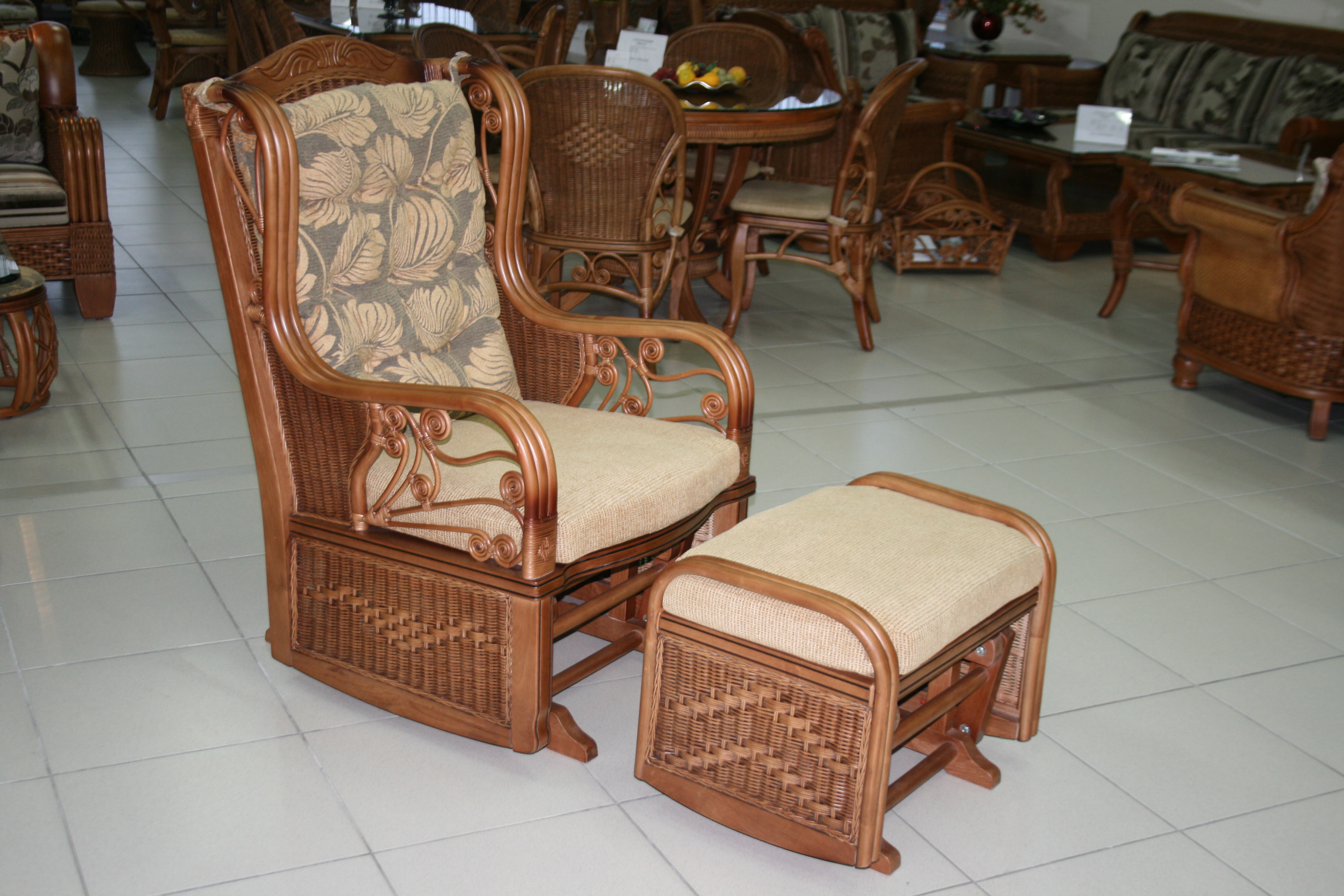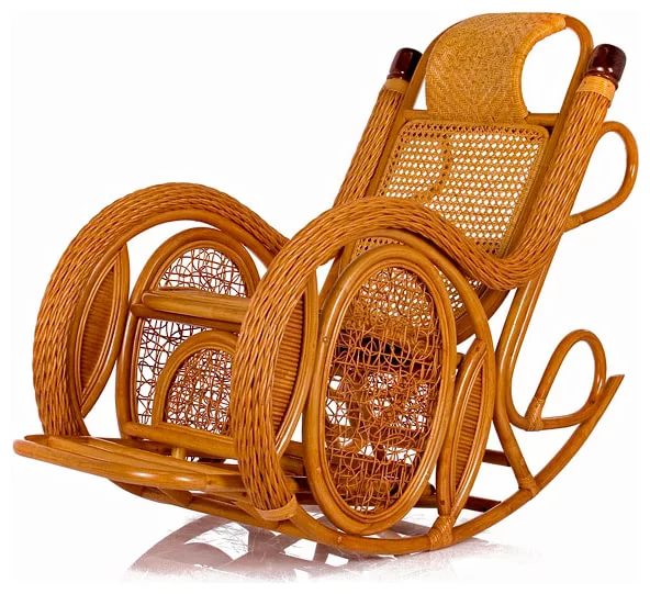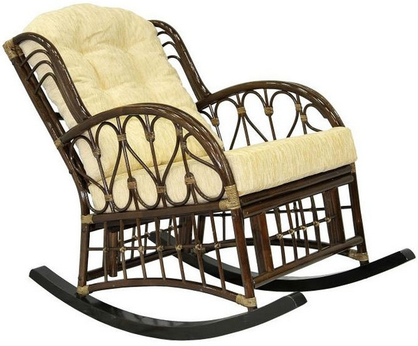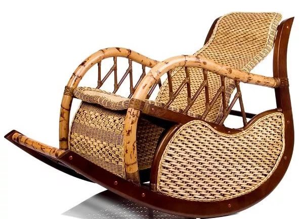 - Meubles de ces jours en rotin exotique souvent donné la préférence sur les vignes de saule. Cette liane tropicale a été importée d’Asie du Sud-Est. La tige de la vigne peut atteindre 300 m de long, grâce à la structure poreuse et flexible du bois, qui lui permet de prendre n'importe quelle forme sous l'influence de la vapeur. On pense que la résistance et l'élasticité du rotin surpassent toutes les essences de bois connues, ce qui le rend parfaitement adapté à la fabrication de fauteuils à bascule.