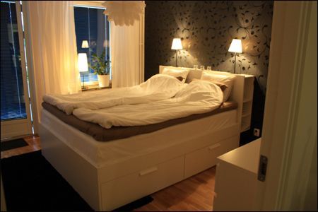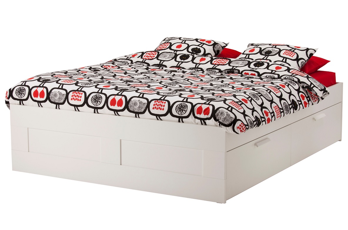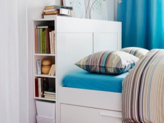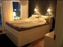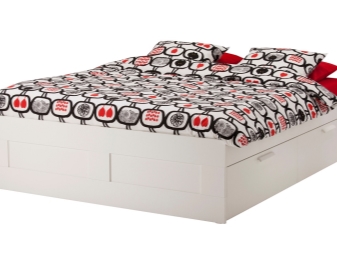 - Modèle pratique "Brimnes" convient aux personnes qui attachent de l'importance au confort, à la commodité et à la commodité. Le modèle est équipé de tiroirs pour ranger les vêtements et de la tête de lit - étagères. Le matériau utilisé pour la fabrication de meubles - aggloméré.