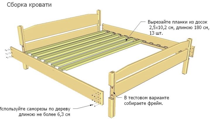 Les lits sont généralement vendus non assemblés pour faciliter leur transport. Pour assembler des meubles, vous pouvez contacter un spécialiste ou les assembler vous-même. En règle générale, le kit comprend des instructions de montage détaillées. Comme il existe une grande variété d'options de lit, il est clair que les instructions de montage ne peuvent pas être uniformes. Mais la version approximative de l'assemblage du lit est montrée dans le diagramme.