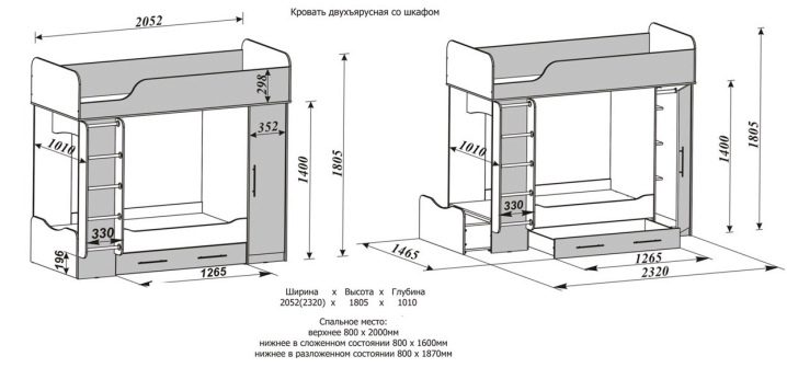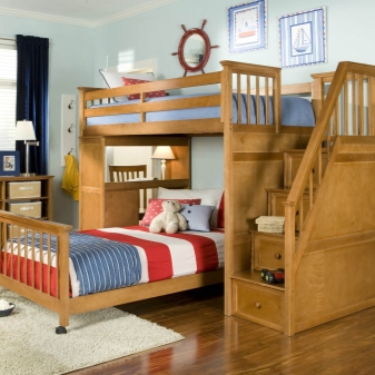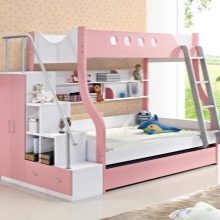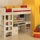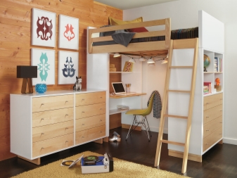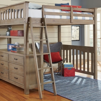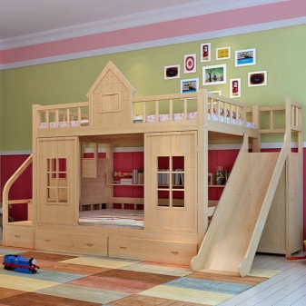 - Multifonctionnalité certains modèles conçus pour un bébé. Dans ce cas, le lit de repos est situé au deuxième étage et au rez-de-chaussée se trouvent des tiroirs, un grenier ou une table.