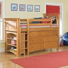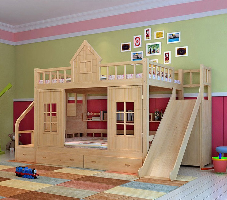 - Espace de jeu. Les concepteurs peuvent équiper un lit avec une échelle en corde ou une glissière, le fabriquer sous forme de machine à écrire, de maison, de bateau.