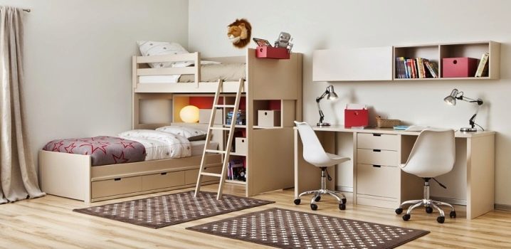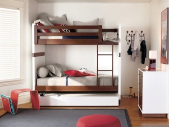 Toutes les familles dans lesquelles deux enfants ou plus sont élevés ne peuvent pas se vanter d'avoir des chambres spacieuses pour tous leurs membres. Par conséquent, la pièce doit être un mobilier pratique et confortable. Les lits superposés avec tiroirs permettent non seulement de gagner de la place dans la pièce, mais également de devenir un ajout élégant à l'intérieur. Avec leur aide, les parents peuvent organiser pour leurs enfants un véritable coin pour enfants avec des équipements sportifs ou un mobilier spécial pour la pratique des cours. Une large gamme de produits vous permettra de choisir le modèle le plus confortable pour toute la famille.