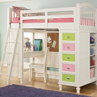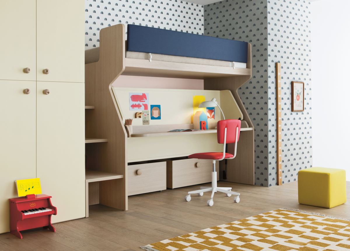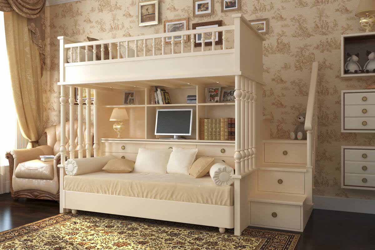 - Économiser de l'espace dans la chambre. Ceci est réalisé par le placement vertical des lits. Certains modèles sont équipés de bureaux, ce qui permet de gagner de la place dans la pièce.