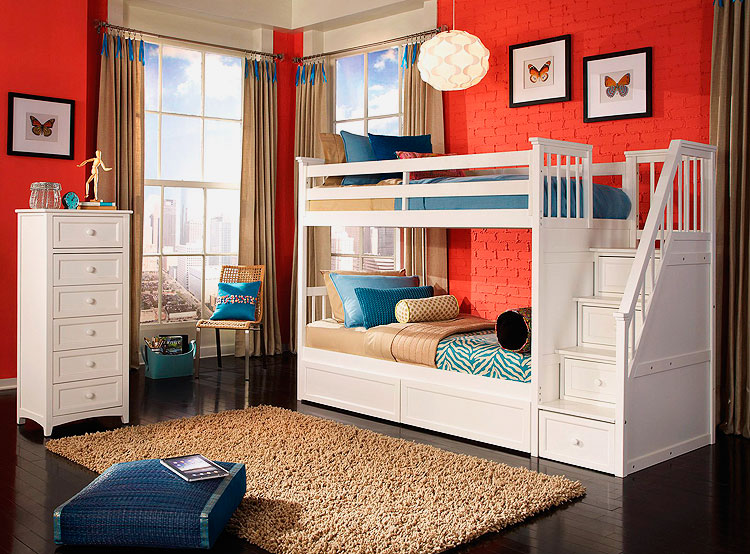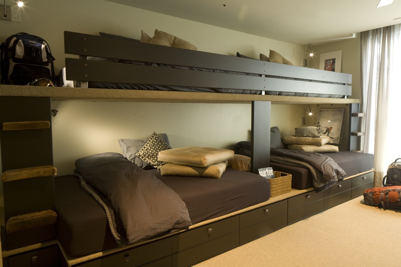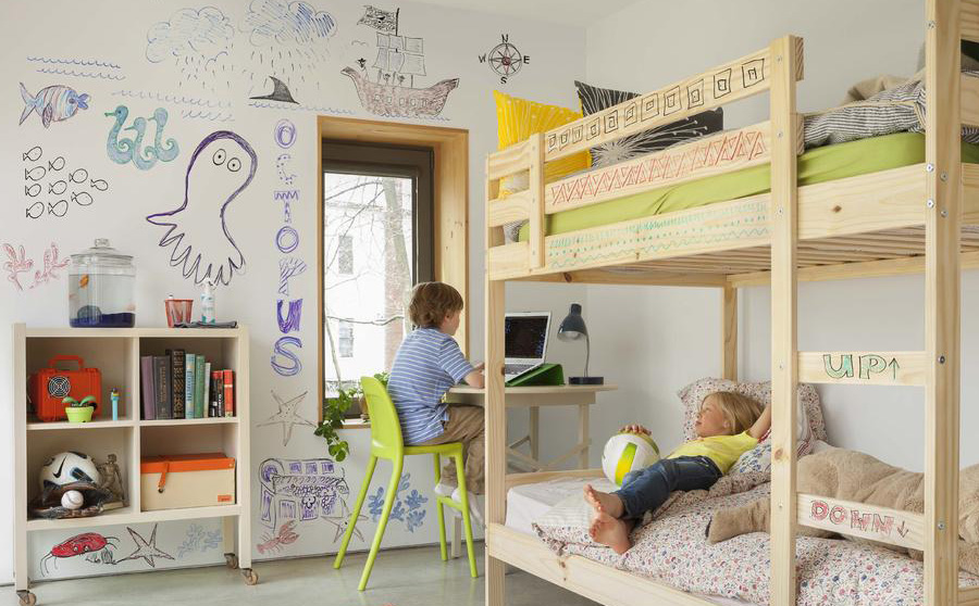- Lorsque quatre enfants doivent être placés dans une petite pièce, ce problème peut être facilement résolu. Cet exemple confirme ceci: cette salle est spectaculaire et confortable à la fois.