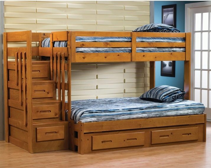 Les lits superposés sont populaires en raison de leur faible coût et de leur polyvalence. Un tel mobilier peut être facilement démonté, ce qui donne lieu à deux endroits distincts à part entière pour les loisirs.Les acheteurs disposent d'un large choix de matériaux dans lesquels les lits sont fabriqués: le bois crée une sensation de confort dans la pièce et le métal se distingue par une résistance accrue.