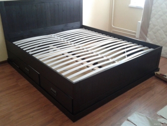 Parmi les inconvénients, il convient de noter le fait que la plupart des modèles sont des cadres sans base orthopédique ou des lattes pour la fixation du matelas. Mais sans raison (ou bas), les modèles de budget sont généralement vendus, ou ceux présentés dans la configuration minimale - comme Fielse ou Brimnes. Chacun d'eux peut facilement être complété par un fond ou une base orthopédique et en même temps choisir le plus approprié pour un type particulier de matelas lui-même - sans ressort ou à ressort.