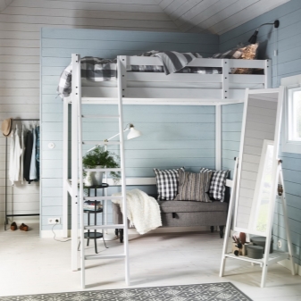 "Grenier" de Ikea méritent une attention particulière: ils sont incroyablement fonctionnels et ne prennent pas beaucoup de place dans la chambre, idéal et inhabituel pour une chambre d'enfants, où il est si important de préserver la facilité.