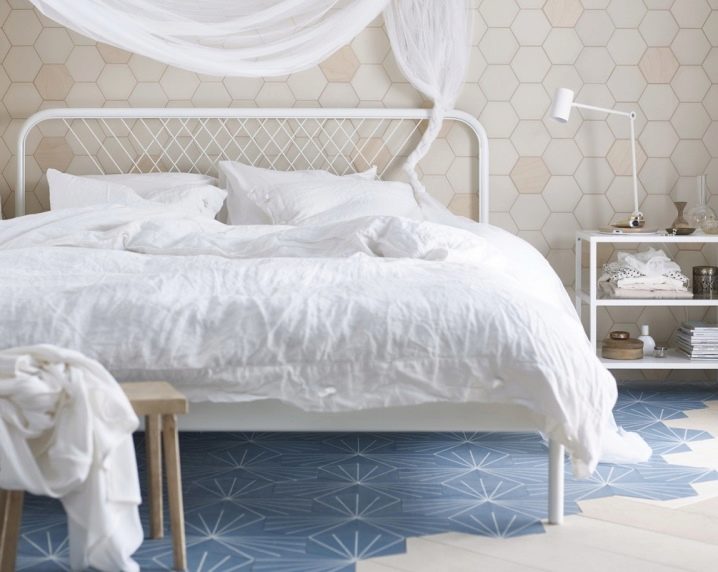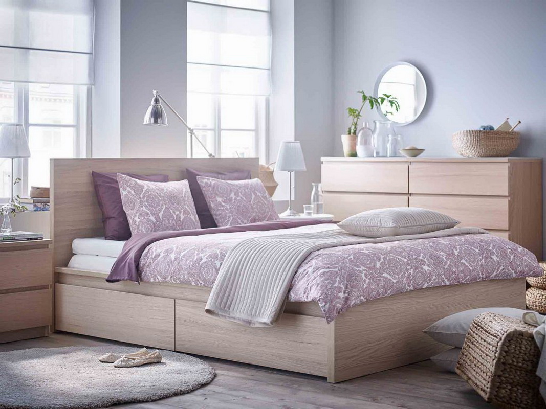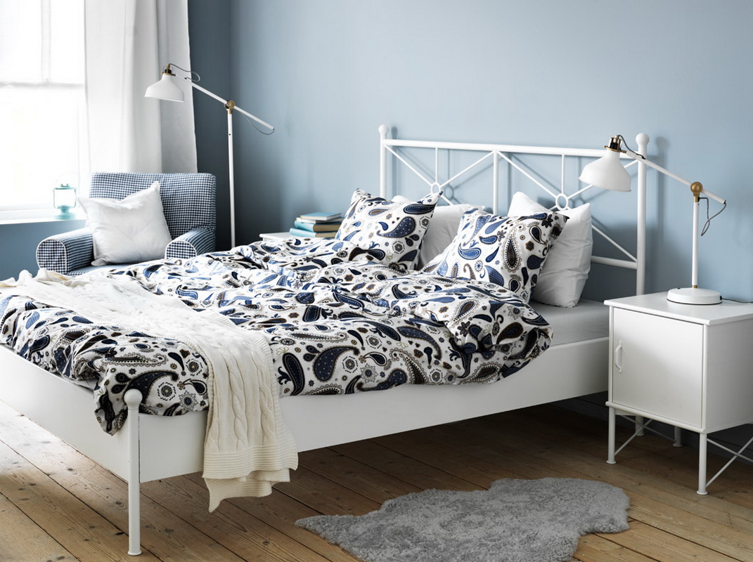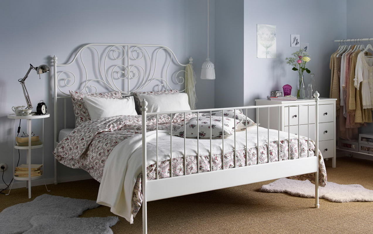 Les lits en métal sont en acier galvanisé avec revêtement en poudre, ce qui les rend durables et presque invisibles dans la décoration de la chambre à coucher.Ils conviennent à la création d'un projet de design scandinave ou romantique concis, dans lequel il est important de préserver l'aspect de l'espace libre, où l'accent est mis sur la décoration et non sur la masse du lit. Le lit en bois Ikea peut être fabriqué en bois massif naturel ou en aggloméré. En règle générale, le bouleau et le hêtre sont utilisés pour la fabrication de lits de marque, sur certains modèles - placage naturel dans la finition (en "Opplans"). Les modèles avec boîtes de rangement sont 100% en aggloméré et recouverts de vernis / peinture. Les cadres "nus" peuvent être en bouleau massif (Hemnes, Fjelse), avec des composants en hêtre ("Tissedal") ou être combinés en métal ("Trysil").