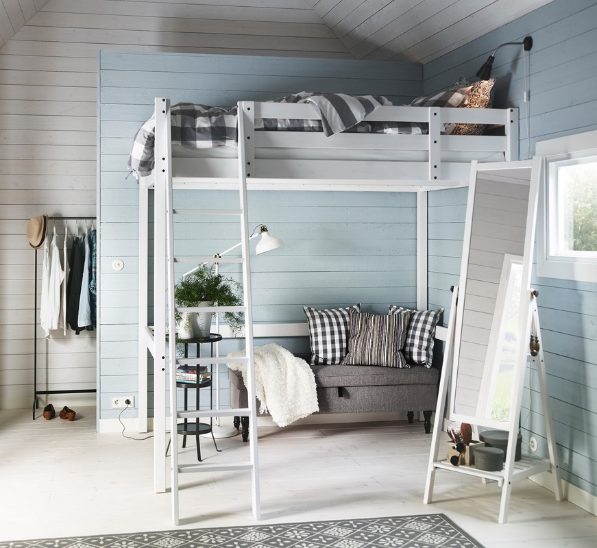 "Grenier", ou les lits superposés sont devenus une véritable marque de fabrique de la marque, ils sont reconnus, aimés et tous les enfants et les adolescents en rêvent. Les modèles de la marque suédoise sont réputés pour leur espace libre sous le lit, pouvant accueillir un espace de travail ou un petit canapé.