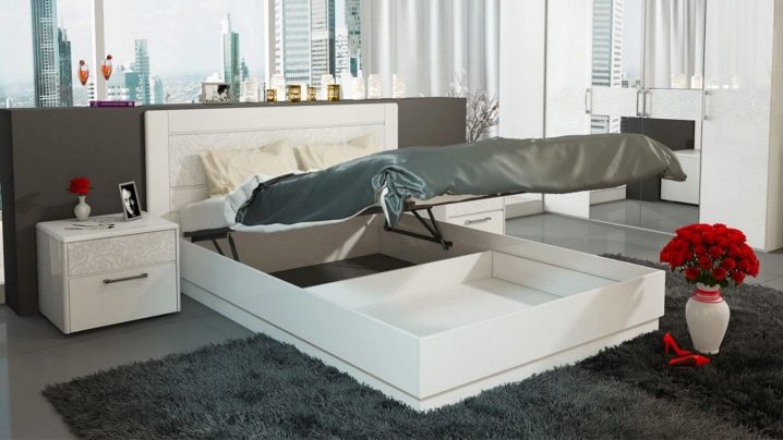 Les modèles "Malm" Ils disposent d'un mécanisme de levage et d'une boîte de rangement spacieuse, située à la base du lit. Les lits sont disponibles en trois couleurs: blanc, noir et marron et dans les tons naturels de «chêne blanchi». Le mécanisme de levage des amortisseurs à gaz ouvre le bas du rack (celui-ci est déjà inclus dans le kit) et permet d'accéder à près de deux mètres cubes d'espace de stockage libre. Les dimensions du lit sont standards: 140 x 200 cm, 160 x 200 cm, 180 x 200 cm.Le corps et le dos sont en carton aggloméré et fibre de bois recouvert de peinture acrylique. Dans les modèles, il n'y a pas de pied prononcé (son rôle est joué par une boîte de rangement d'une hauteur de 38 cm), mais il existe un dossier simple d'une hauteur de 100 cm.