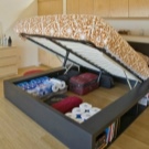 - Avec système de levage. Ces options seront un excellent mobilier pour les chambres spacieuses. Mais placer une telle structure dans un petit espace sera assez problématique. Les unités doubles sont fournies avec un système de levage spécial "ascenseur à gaz" dans le cas où la boîte à linge est intégrée à la structure principale. De cette façon, vous pourrez simplifier l'utilisation du modèle. Un moyen simple, durable et confortable de soulever une unité lourde avec un matelas vous facilitera la vie. Pour organiser le fond est généralement utilisé panneaux de fibres.