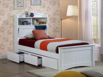 - Large gamme. De nombreux fabricants proposent d’acheter différentes versions de ces lits. Cela peut être un modèle en bois massif avec des tiroirs coulissants, avec un dossier robuste inhabituel ou un produit créatif dans un style campagnard. L'essentiel est de décider de vos préférences et d'acheter un modèle qui vous convient.
