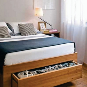 L'utilisation de boîtes vous permettra de stocker des articles, de la literie et d'autres articles littéralement au bout des doigts. Vous n'aurez pas besoin d'acheter une armoire ou une commode séparée.