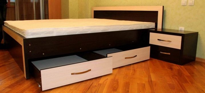- Les modèles peuvent être fabriqués avec des tiroirs sur roues. Ces modèles sortent du lit ou s’ouvrent à l’aide de guides. Les boîtes de Vykatny deviendront vos assistants supplémentaires dans la vie.