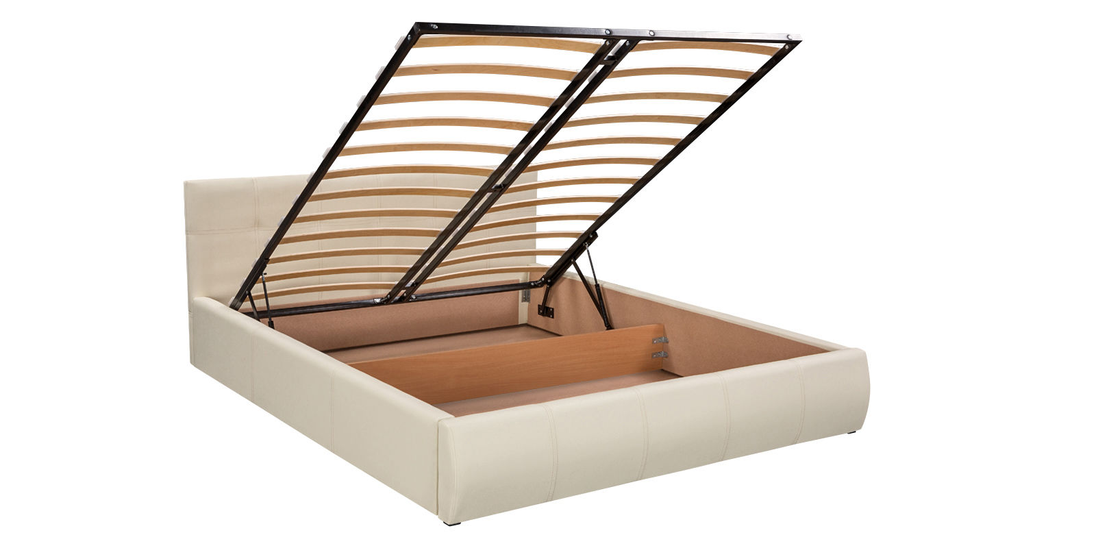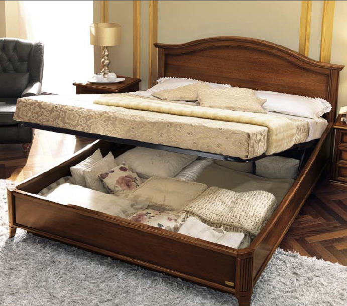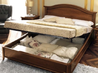 - Gain de place. C'est le mobilier idéal, fonctionnel à tous égards: il est confortable, pratique, a une belle apparence à l'intérieur et crée un espace supplémentaire sous le lit. À l'intérieur de ce lit, il y a une niche de rangement supplémentaire qui ne cède en aucune façon.