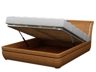 - Matériel. Chêne et hêtre - un des bois les plus chers, mais aussi le plus solide, durable en termes de capacités. Les modèles de lit les plus économiques du massif avec le mécanisme de levage sont le pin et les autres espèces de conifères: ils diffèrent par leur douceur et leur compatibilité aux dommages mécaniques.