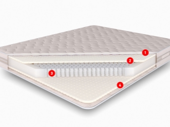 Et certains, et d'autres modèles, sont des éléments métalliques de forme torsadée, disposés verticalement. Ils diffèrent par la taille et le nombre de ressorts (en fonction du modèle, leur nombre au mètre carré varie de 340 à 1500 pièces). Dans les matelas du type dépendant, la connexion se fait par des ressorts en acier. Sous charge, ils travaillent ensemble. Dans une unité indépendante, chaque élément métallique est emballé dans une housse en tissu respirant. Pour supporter l'intégrité du cadre du bloc, ce sont les capots qui sont connectés, pas les ressorts.