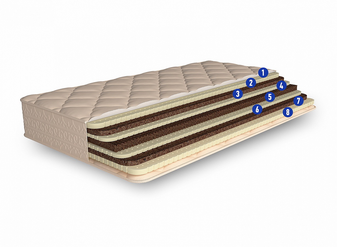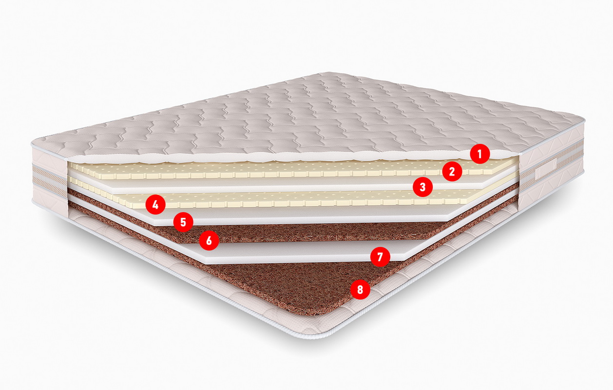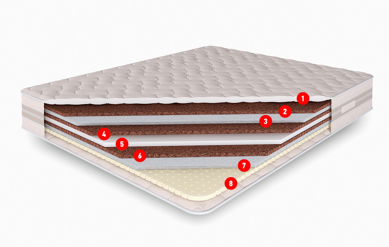 - "Denver" - modèle sans ressorts série "Ligne Sport"Ayant une hauteur de 20 à 24 cm, conçu pour les utilisateurs jusqu'à 150 kg, dans lequel le latex de l'unité rigide et semizonnym coir (couches alternées) de squelette de support et de fournir des caractéristiques anatomiques;