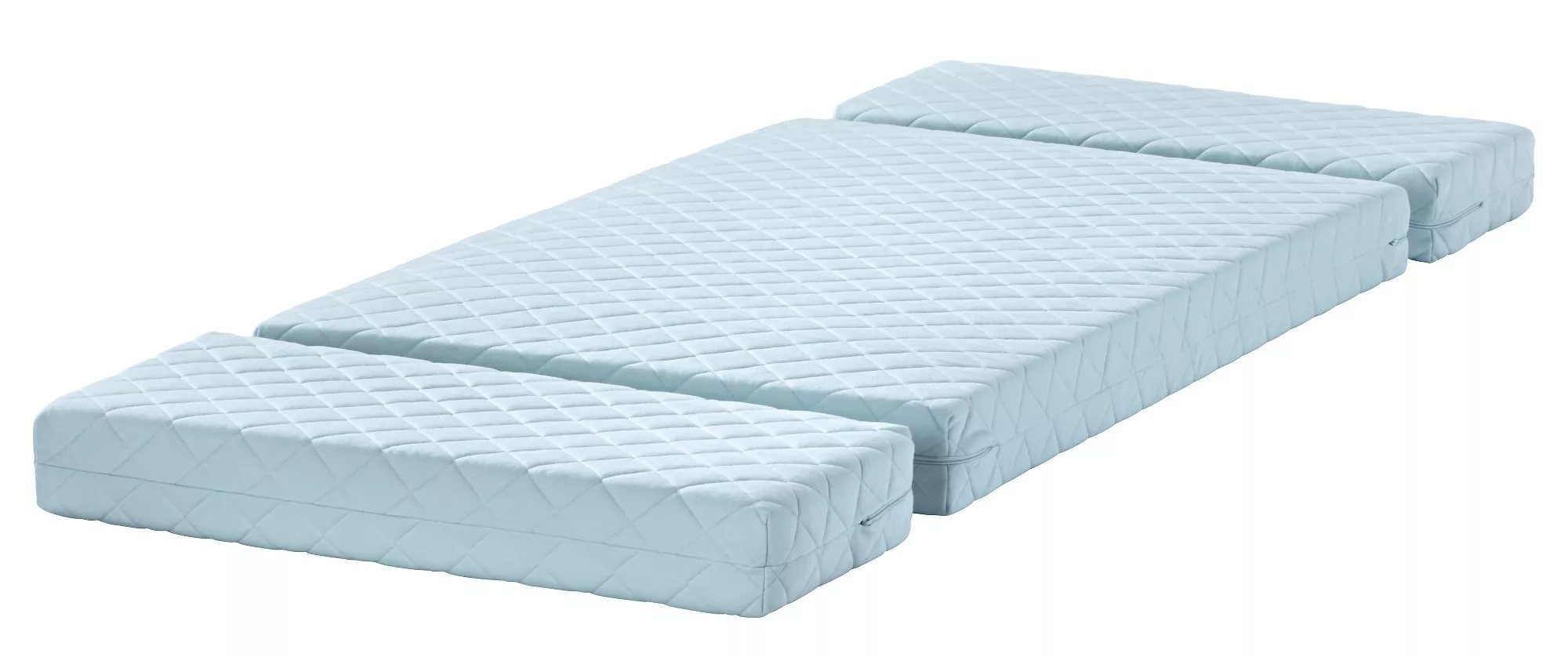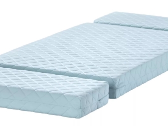 Un autre type de matelas peut être envisagé pliage, Ce sera intéressant pour ceux qui veulent gagner de la place. Ce produit est composé de trois parties, bien qu’à l’extérieur, il ne diffère pas du produit ordinaire. Dans le set, il y a une housse spéciale pour le matelas, qui le protège de la pollution. Un tel modèle a bien sûr ses avantages: il a de petites dimensions, est résistant à l'humidité, a une valeur modeste, ce qui vaut également pour l'avantage de gagner de la place.Le produit est en polyuréthane ou en latex, ce qui lui permet de laisser passer l'air parfaitement.