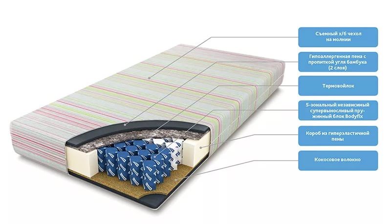 Une étape importante dans l’achat d’un matelas sera le choix du matériau de remplissage le mieux adapté. Si vous faites une séparation à grande échelle, alors il y a des options de printemps et sans ressort. Les mérites de la première ont déjà été mentionnés, il est maintenant possible de révéler plus en détail la deuxième catégorie. Lorsque vous choisissez un matelas sans ressort, vous devez tout d’abord faire attention à son matelas. Il existe différentes options sur le marché: