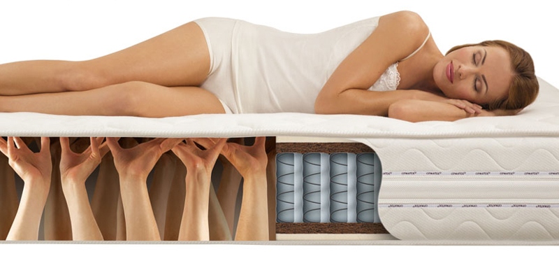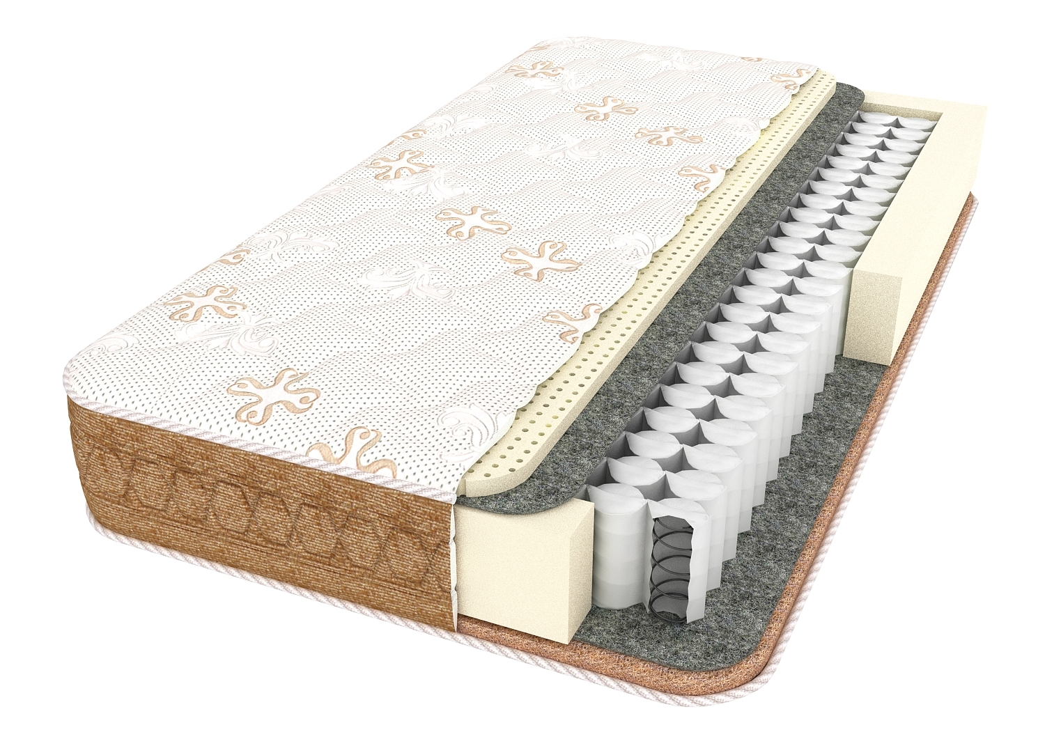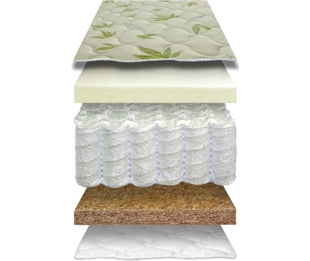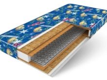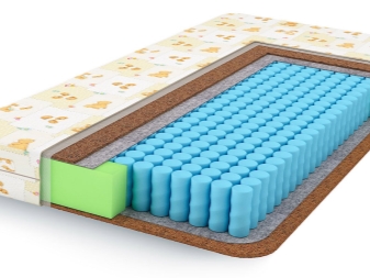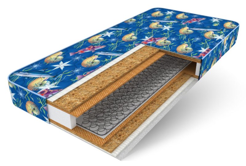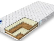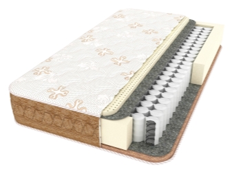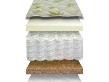 - Assurez-vous qu'il n'est pas trop mince. Même si l'échantillon montre qu'il a une couche de fibre de coco impressionnante, en fait, cela sera totalement inadéquat. Il est préférable de préférer les options avec blocs de ressorts séparés supplémentaires ou alternance de couches denses dematériaux naturels;