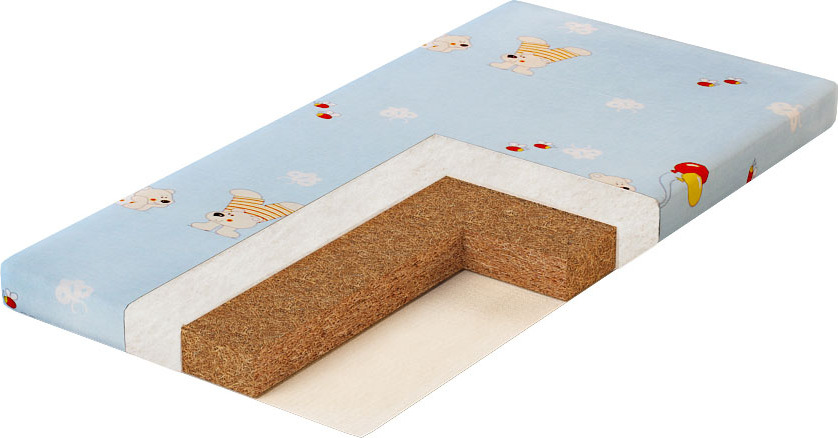 Une fibre de coco enfermée dans une enveloppe tout aussi fiable et hypoallergénique, par exemple en coton biologique, convient mieux à un lit de bébé, une poussette ou un berceau.