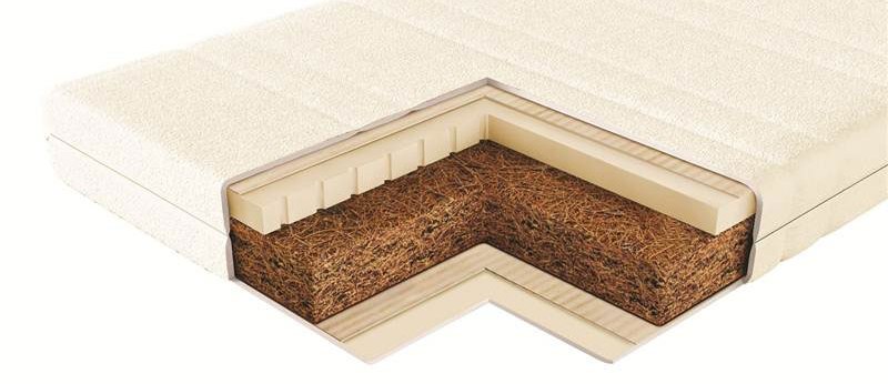 - Au cœur de la fibre de coco 100%. Ces matelas sont les plus rigides et sont recommandés pour les personnes souffrant de divers troubles du système musculo-squelettique;
