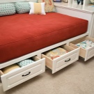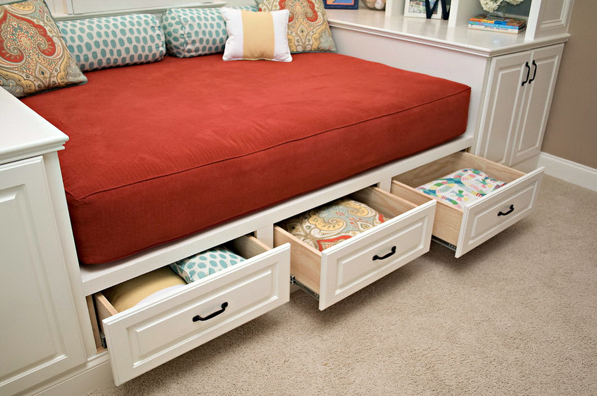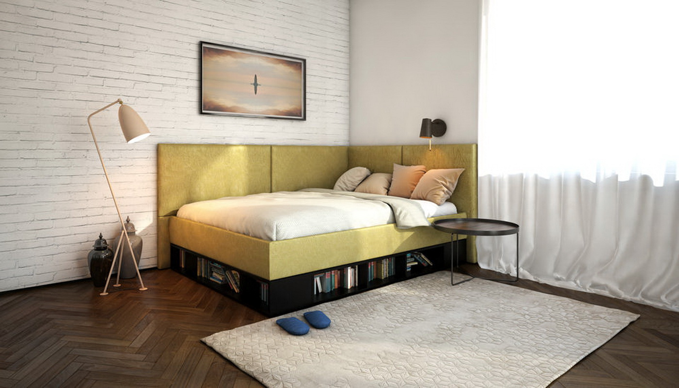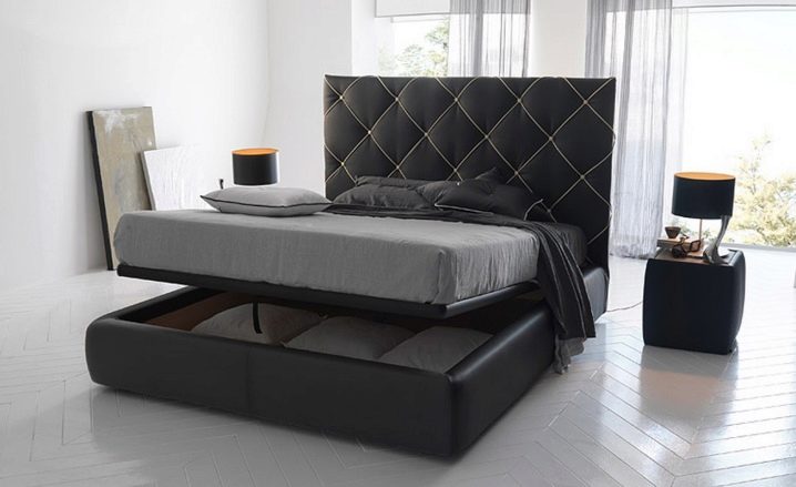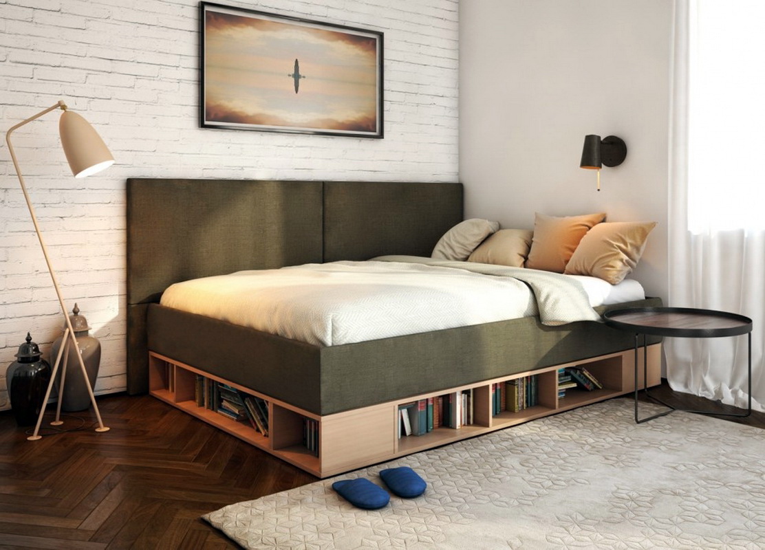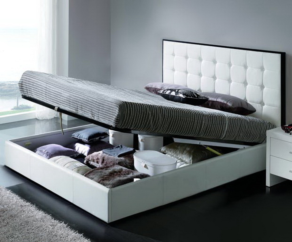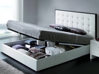 - Il y a aussi des lits dans lesquels il y a un bureau pour ranger toutes choses mais ce n’est pas un tiroir, mais une niche intégrée au cadre. Mais pour y arriver, vous devez lever le lit. Cette option est typique pour les modèles avec un mécanisme de levage. Ce modèle présente de nombreux avantages, dans la mesure où toute la surface du lit constitue une niche pour le rangement des objets, ce qui vous permet d’économiser au maximum chaque centimètre carré de la chambre. Le seul inconvénient de cette conception est que l'accès aux objets sous le lit est difficile, car il doit être levé.