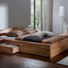 - Les modèles les plus populaires sont "Camions" avec tiroirs pour ranger le linge. Ce lit vous permet d'utiliser très efficacement la surface de la pièce, car la boîte est assez volumineuse, elle peut accueillir beaucoup de choses. Habituellement, il stocke des chaussures, des serviettes, la literie et autres articles nécessaires. Les boîtes sont généralement construites sur le côté du lit et ont un design rétractable. En règle générale, ils sont très profonds et plutôt larges.Un tel modèle de lit conviendra parfaitement à la chambre de petite taille.