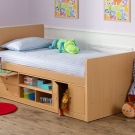 - Pour les ados Ces modèles ne diffèrent des options offertes aux enfants que par la taille des façades, les nuances. Habituellement, la longueur du lit est de 190-200 centimètres, la largeur - 80 centimètres.