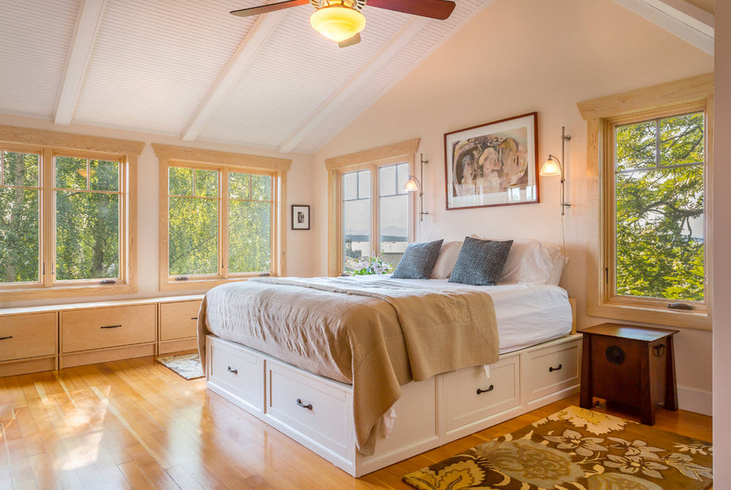- Économies de financement. Non seulement l'espace permet d'économiser de tels meubles, mais également vos économies. Après tout, vous obtiendrez deux produits à la fois. Vous n'aurez pas besoin d'acheter une armoire pour plier vos affaires et votre literie. Maintenant, tout sera à portée de main.