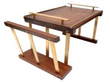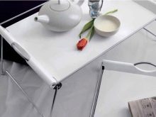 Un autre modèle intéressant est le support de table.. Son plateau se compose de deux parties: réglable et fixe, qui est parfois équipée d’un évidement pour l’installation de la vaisselle.