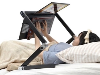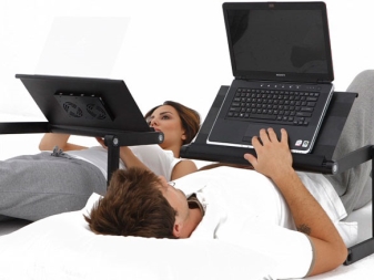 Les tables les plus populaires combinent un plateau et un support pour un ordinateur portable. Certains modèles ont un ventilateur intégré qui peut être activé à l'aide d'un ordinateur portable et d'un câble USB. Une table pour un lit est également utile car l'ordinateur portable ne surchauffe pas lorsqu'il est à la surface - comme par exemple lorsque le ventilateur est fermé alors qu'il est à genoux. Une surchauffe fréquente entraînera une défaillance de l'appareil.