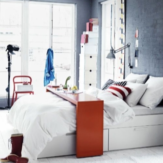 Certaines personnes occupées achètent ce meuble pour le travail. Pour cette raison, certains modèles ont un support spécial pour ordinateur portable. Il est très pratique de s'asseoir dans son lit pour prendre une tasse de café et remplir le rapport.