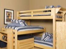 Selon les commentaires des heureux propriétaires de lits à trois niveaux pour leurs enfants, le mobilier d'un tel plan est une solution idéale pour les appartements urbains de petite taille. Maintenant, les parents ne se demandent pas où organiser un lieu de jeu si toute la crèche est remplie de lits.Les lits à trois niveaux, quel que soit leur type, prennent un peu de place, laissant ainsi la plus grande partie de la pièce libre pour jouer et se reposer pour les enfants.