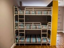 Le coût des lits à plusieurs niveaux sera beaucoup plus classique. Cependant, il vaut la peine de considérer le fait qu'au lieu de deux ou trois meubles détachés, vous achetez un produit qui servira trois enfants à la fois.