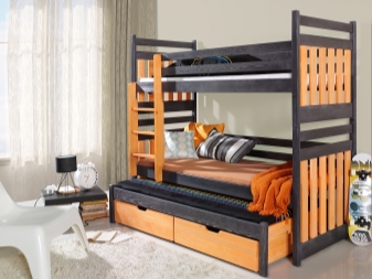 Une gamme de modèles diversifiée permet de choisir et d'acheter des meubles qui correspondent au design intérieur d'une pièce. Les enfants utilisent souvent des lits triples pour leurs jeux, en particulier les imitations d’un voyage dans un compartiment de train.
