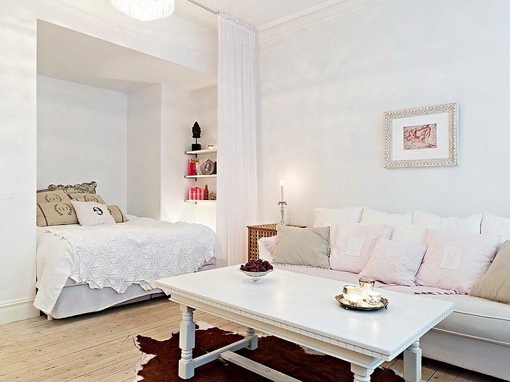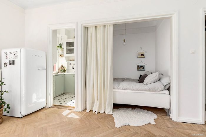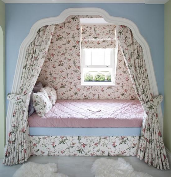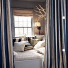 - Drapant un coin confortable avec des rideaux, vous obtenez une chambre confortable;